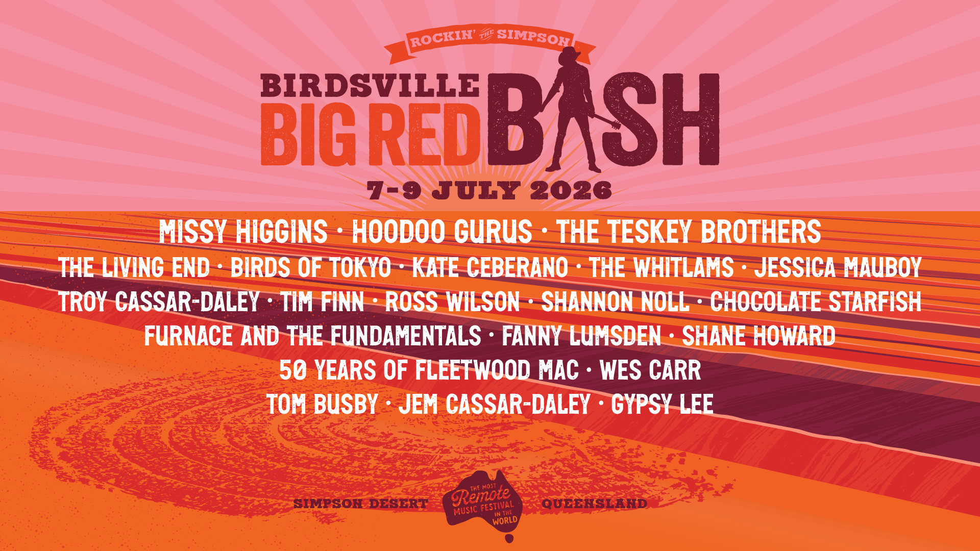 Every July, Birdsville’s iconic Big Red Bash kicks off under the open skies of Australia’s Simpson Desert. Thousands of people from around the country – and the world – make the journey to experience the most remote music festival on the planet.