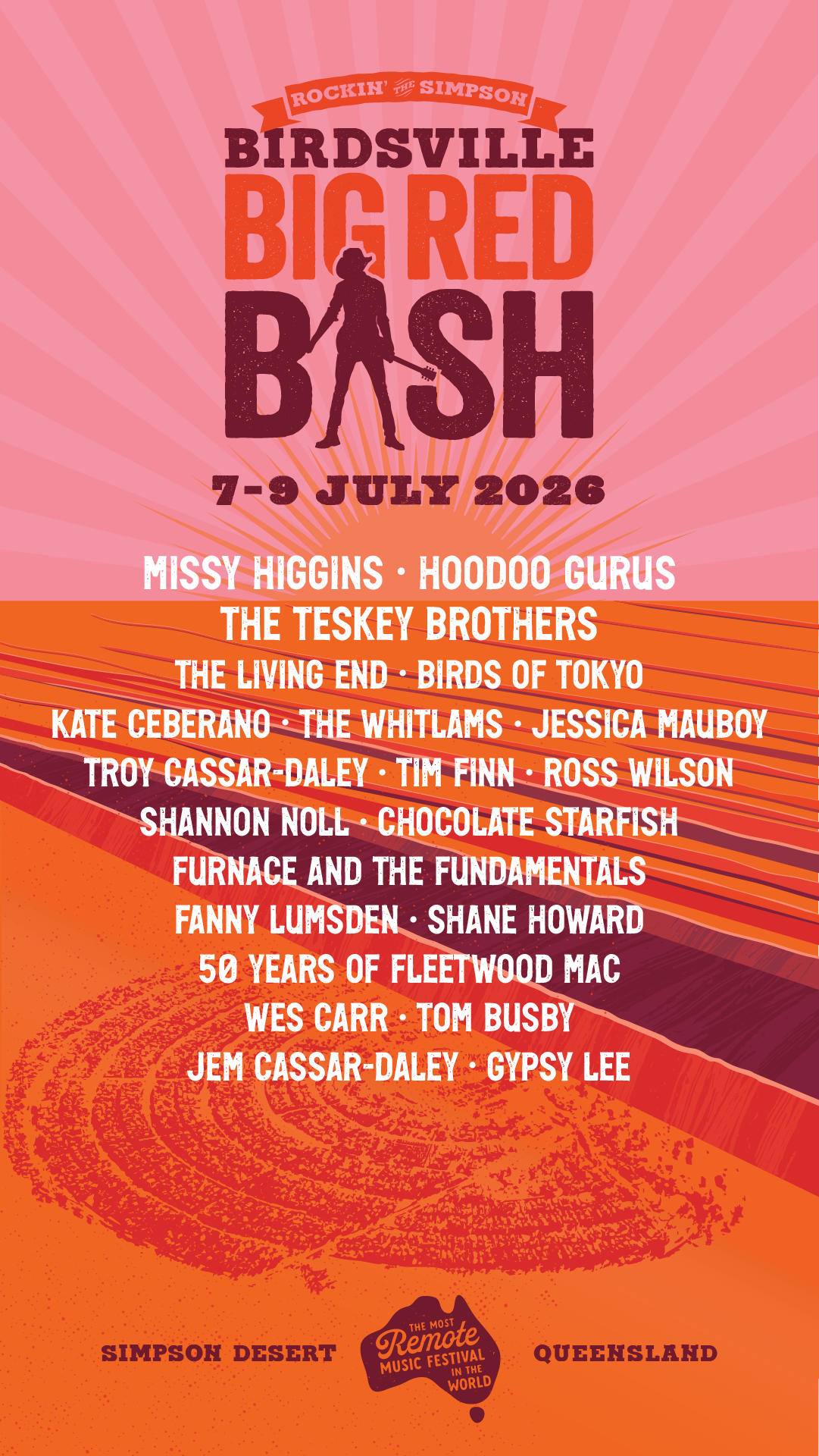 However you get there, you’ll soak up three incredible nights under the stars – dancing, singing and celebrating to the soundtrack of Australia’s favourite artists as they rock the Simpson Desert.